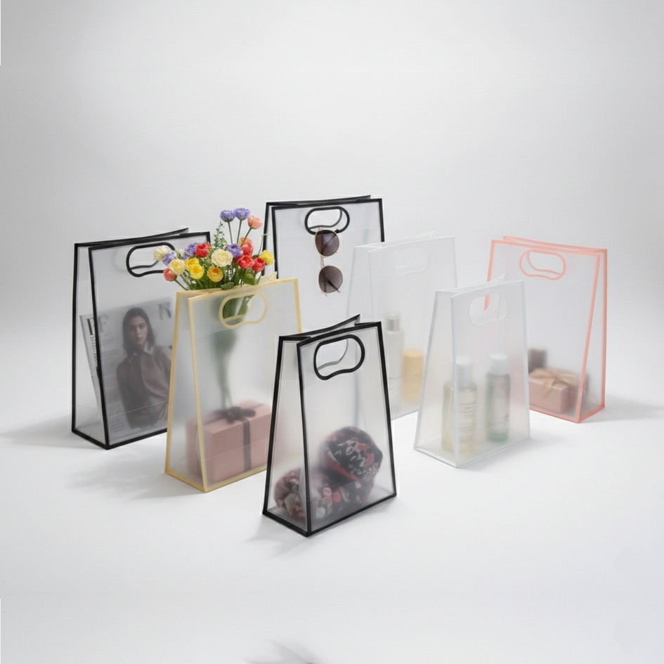 Sacola de PVC, Sacola Fosca, Sacola para Presente, Embalagem para Loja, Sacola Transparente, Sacola Retangular, Sacola com Alça, Sacola Reutilizável Premium, Sacola para Cosméticos, Sacola para Lembrancinha