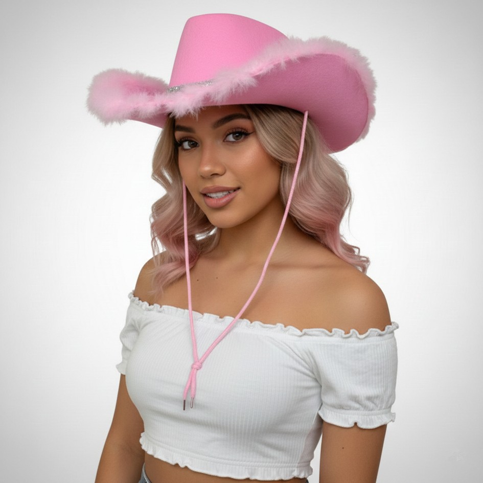 Chapéu Cowgirl Rosa de Festa com Penas e Paetês - Brilhe como uma Estrela!