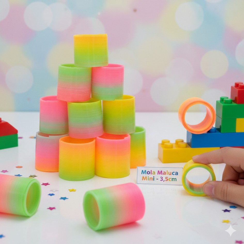 Mini mola maluca, brinquedo mola maluca, mola maluca colorida, brinquedo infantil, lembrancinha de festa, brinde promocional, alívio do estresse, brinquedo sensorial, brinquedo para festas infantis
